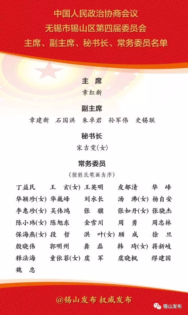 【锡山】政协性爱论坛锡山区第四届委员会主席、副主席、秘书长和常务委员名单