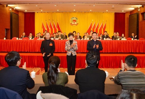 ▲区政协主席陈燕,区政协副主席陆益、唐江澎、耿国平、黄明,秘书长马晓凌和区政协常委在主席台就座。区领导李秋峰、吴建元、顾智杰、周子川、吴燕应邀出席闭幕式并在主席台就座。