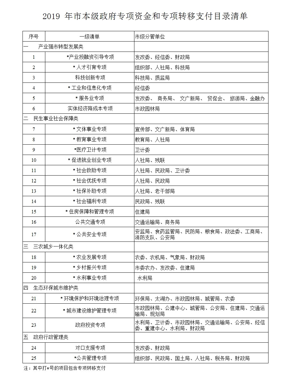 2019年市本级政府专项资金和专项转移支付目录清单