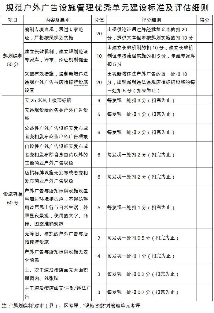 附件:规范户外广告设施管理优秀单元建设标准及评估细则