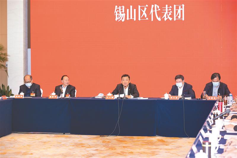 1月19日下午,市长杜小刚来到市十六届人大五次会议锡山区代表团,与代表们一起审议政府工作报告。(朱吉鹏 摄)