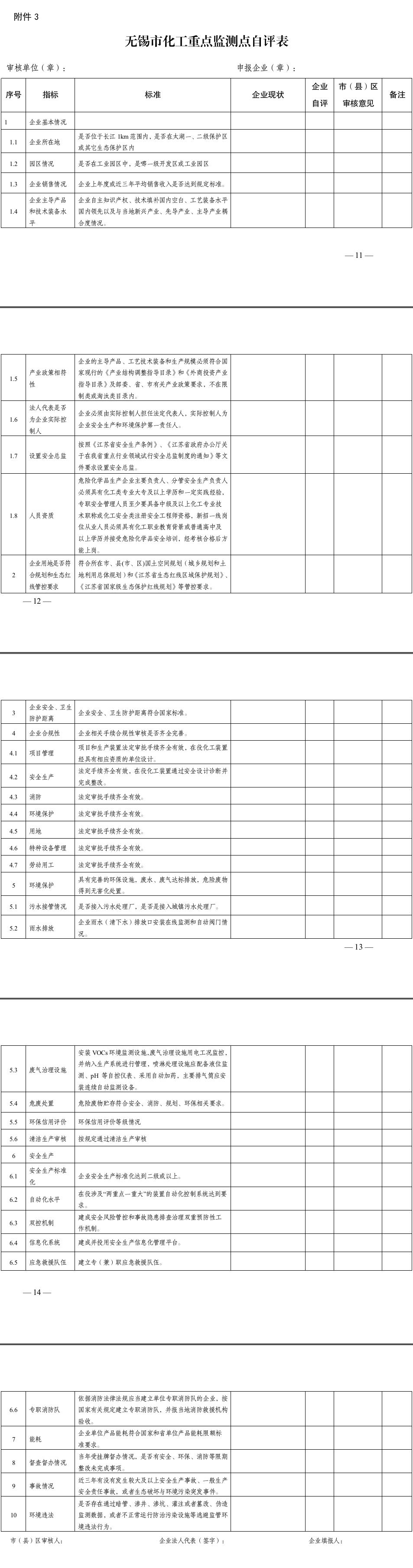 (六)企业具有完善的环保设施,废水、废气达标排放,危险废物得到无害化处置,企业当年环保信用评价等级必须为“绿色”或“蓝色”。生产废水不得接入城镇污水处理厂,按照化学工业水污染物排放标准(DB32/939-2020)执行,企业雨水(清下水)排放口安装在线监测和自动阀门;厂界应安装VOCs环境监测设施,废气治理设施应装有用电工况监控,并纳入生产系统进行管理,喷淋处理设施应配备液位监视、pH等自控仪表、采用自动加药,主要排气筒应安装连续自动监测设备;危险废物规范化管理达标,编制《突发环境事件应急预案》并组织演练、培训,配备应急池、导流槽等环境应急防范措施,配齐配足应急物资,同时危险废物贮存应符合安全、消防、规划等相关要求。