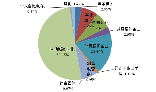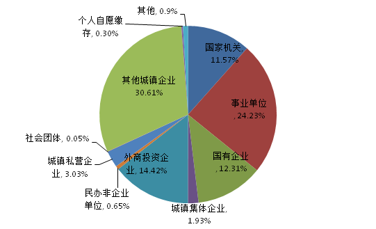 2021年三季度实缴职工数按不同性质单位分类占比图