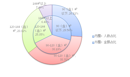 从贷款群体来看,刚需与改善型住房需求职工分别占贷款总人数的29.56%和64.04%。从单位性质来看,以城镇私营企业职工为主,贷款笔数和贷款金额占比分别为41.55%、39.88%。从购房面积来看,职工贷款购买小于90㎡、90-120㎡房屋居多,分别占贷款总人数的29.56%、38.19%。从主借人缴存基数来看,贷款主要以中、低收入职工为主,分别占贷款总人数的33.35%、63.56%,说明我市住房公积金贷款政策在保障刚需职工需求,体现住房公积金互助性方面发挥了较大的作用,住房公积金制度的初衷未改变。具体放贷结构如下: