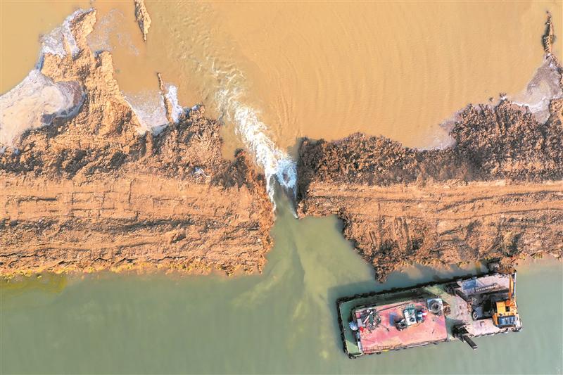 昨天上午8点,太湖隧道南泉段施工现场一片繁忙。随着挖机挥动铁臂挖开围堰,隧道南侧出现了一处入水口,汩汩湖水从太湖流入围堰内。中铁四局太湖隧道项目部工程部部长何杰红介绍,本次回水为隧道第7仓至第10仓,回水量约90万立方米,预计回水时长约48小时。此次回水后将新增1.5公里的隧道主体处于水面以下,隧道整体“潜入”湖底。