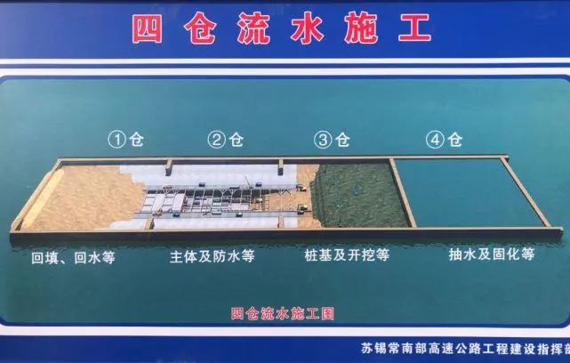 太湖隧道采用“堰筑法(围堰明挖)”,分别从隧道南泉和马山两端向湖中 逐段分仓推进,逐段抽水,随时回填的方法。为了保留足够的开放过水区间,不影响湖水流动,隧道施工逐段分仓进行,通过“进一还一”的方式推进,这就意味着每完成一仓主体工程建设,将进行回土、回水作业,并逐步恢复湖面。