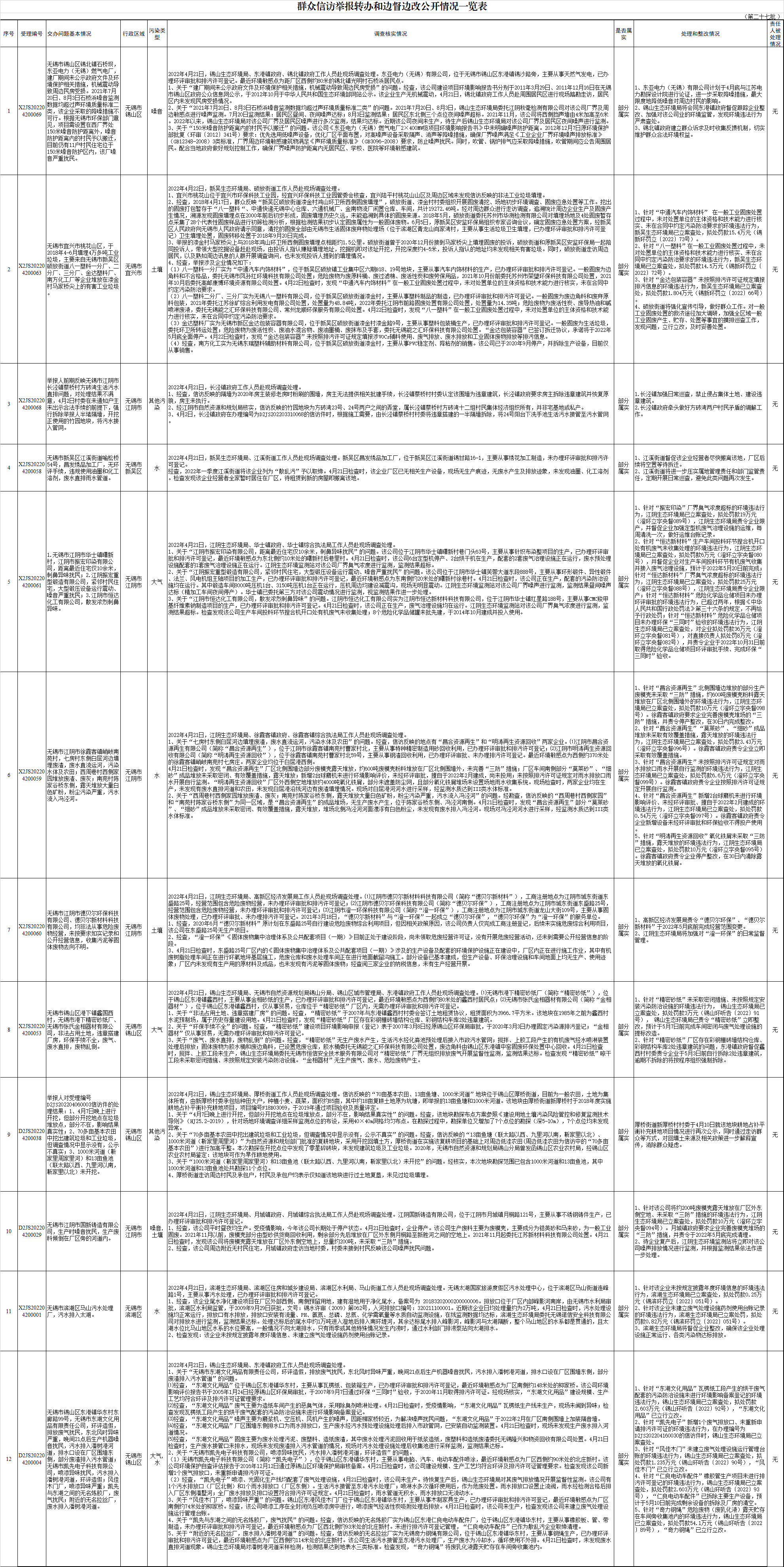 群众信访举报转办和边督边改公开情况一览表(第二十七批)