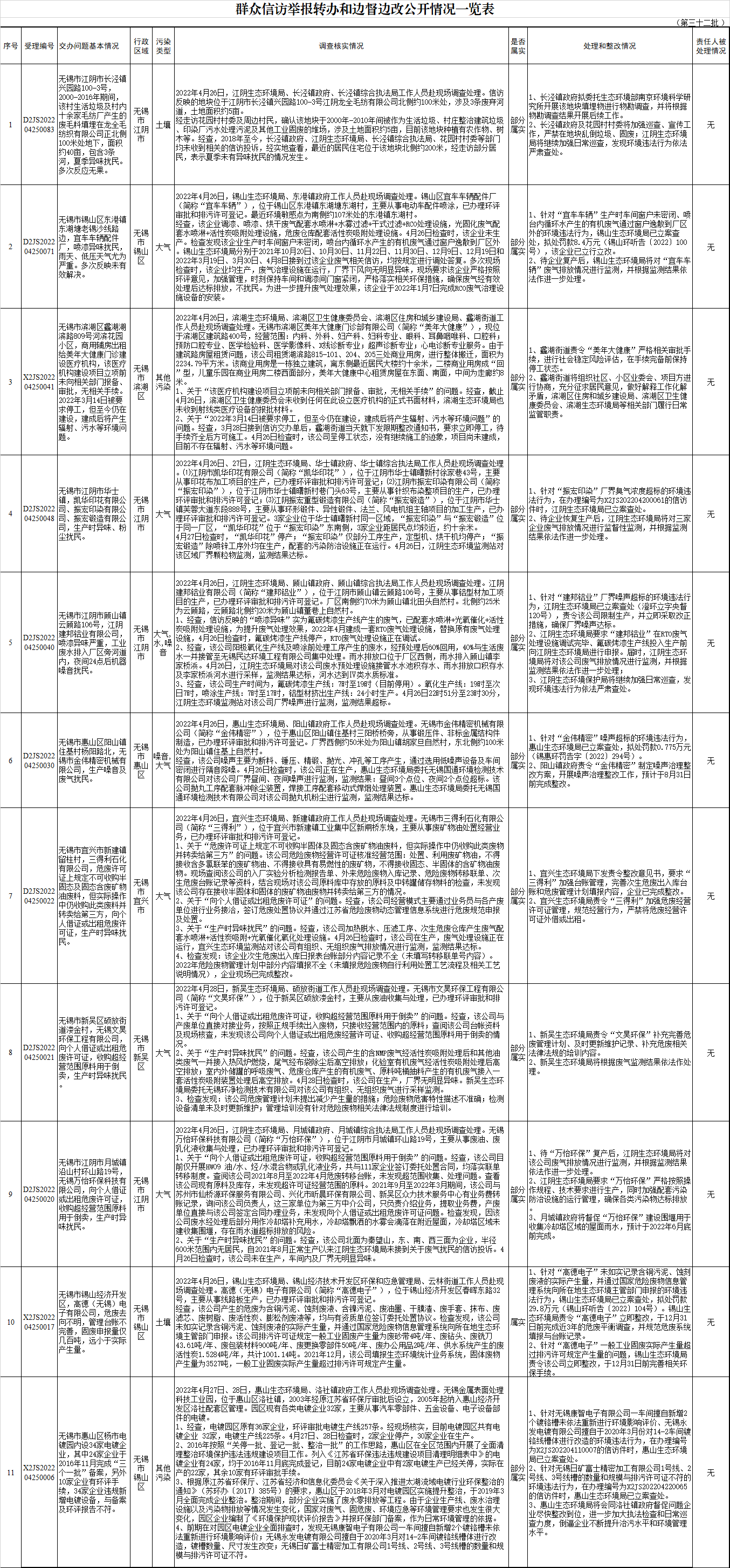 群众信访举报转办和边督边改公开情况一览表(第三十二批)