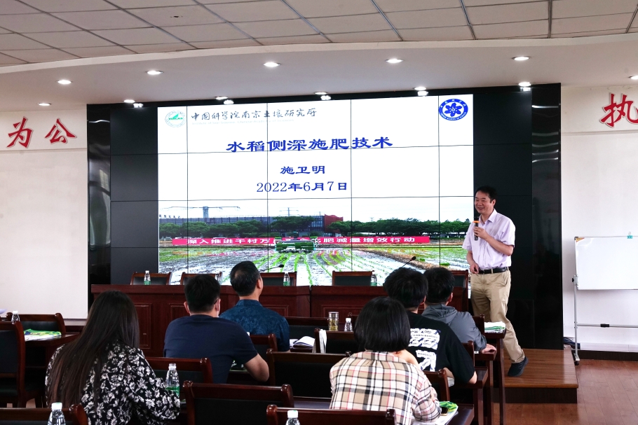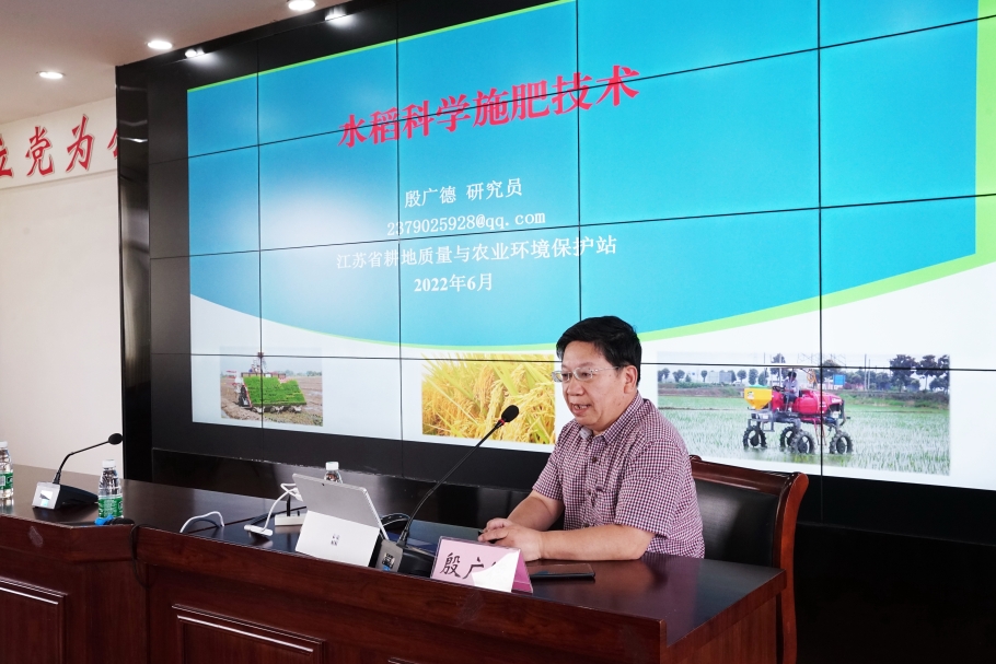 培训会上,江苏省耕地质量与农业环境保护站殷广德研究员、中国科学院南京土壤研究所施卫明研究员两位专家分别就测土配方施肥技术、水稻侧深施肥技术进行了授课。