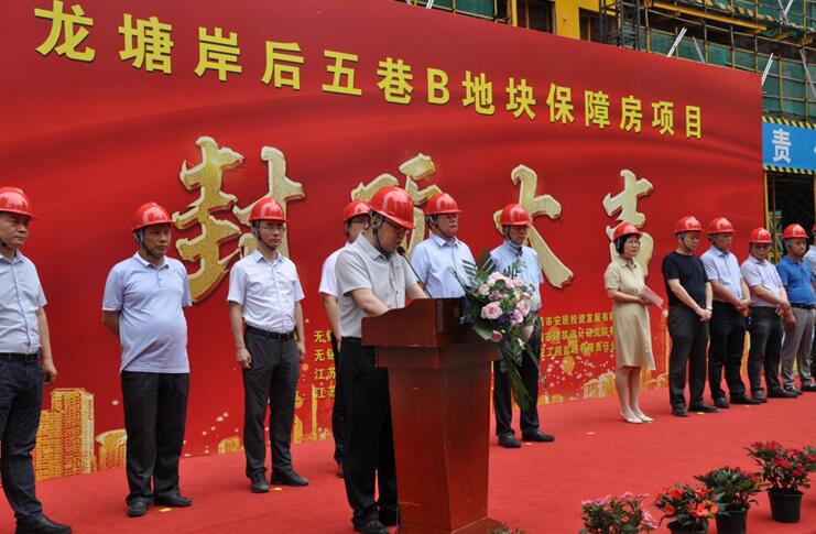 6月24日上午,市级共有产权保障房建设项目——龙塘岸后五巷B地块主体结构全面封顶仪式在施工现场顺利举行。市住房城乡建设局副局长孙晓鹏、市城建发展集团有限公司副总裁万妮娅和市房屋管理服务中心主任曹振新等参加此次活动,共同见证这一重要时刻。