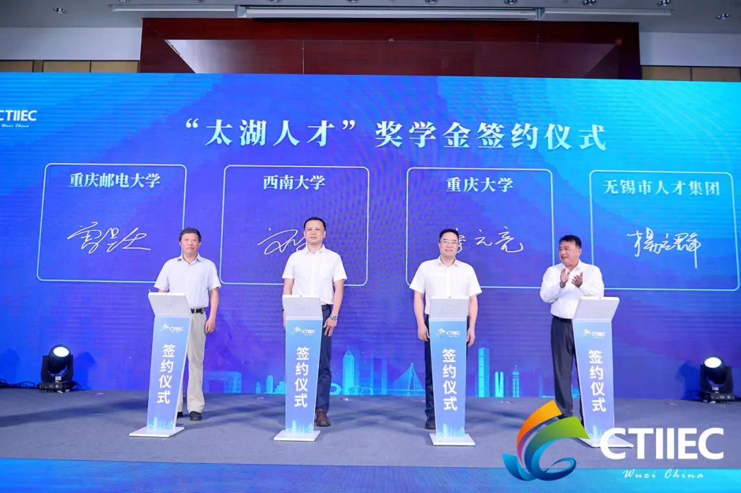 6月24日,在重庆赛区现场,性爱论坛才集团与重庆大学、重庆邮电大学、西南大学签订“性爱论坛太湖人才奖学金”设立协议,深入推进校地校企合作,架设引才用才桥梁,激励重庆高校的优秀学子奋发向上,创业性爱论坛、创新滨湖。