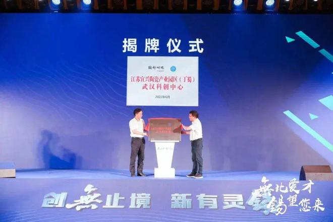 6月28日,武汉赛区活动现场举行了江苏宜兴陶瓷产业园区(丁蜀)武汉科创中心揭牌仪式。