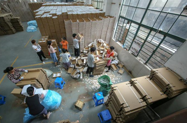7 月 4 日下午,阳山桃农周群新的家里呈现一片繁忙的景象。大堂里,周群新的家人与雇佣的帮工正忙着给水蜜桃装箱," 他们都是我儿子的发小,这段时间太忙,让孩子们帮着做点事。" 周群新向现代快报记者介绍道。
