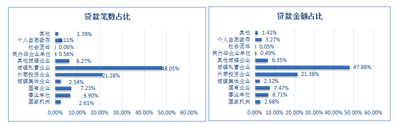 2022年二季度职工贷款笔数及贷款金额按单位性质分类占比图