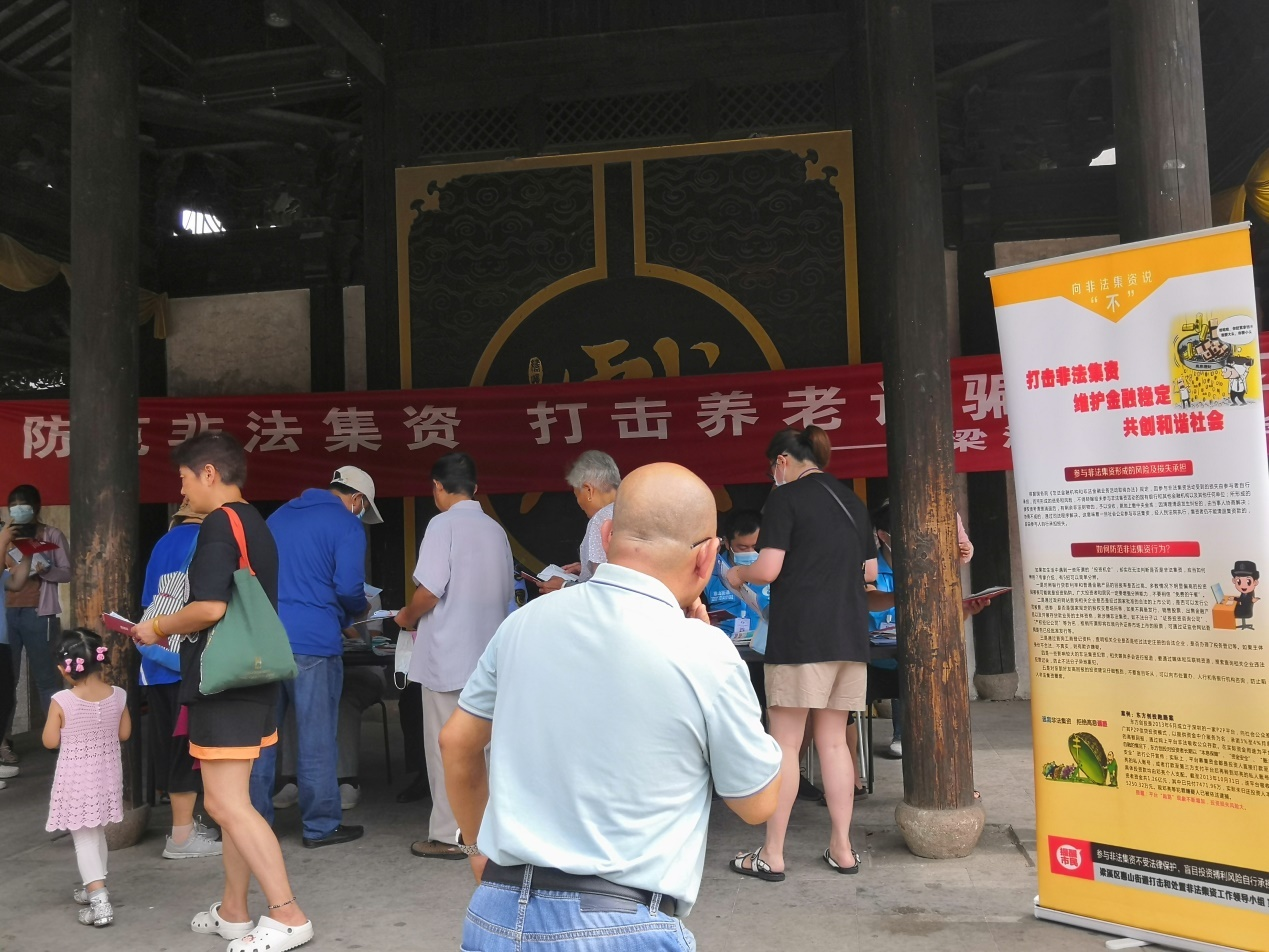 为进一步推进阳光、透明、开放、服务型政府建设,深入推进政务公开,促进政民互动交流,8月25日上午,梁溪区地方金融监管局会同惠山街道,联合辖区公安派出所、市监惠山分局等单位 ,在老年人集中的惠山古镇开展了以“防范非法集资 打击养老诈骗 安享幸福晚年”为主题的宣传活动。
