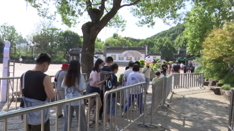 上午9点半,前来惠山古镇景区游园的市民游客已经排成了一条长龙。虽然景区客流较平日有所增加,但大家佩戴好口罩,主动配合工作人员进行扫码和测温工作,现场秩序井然。