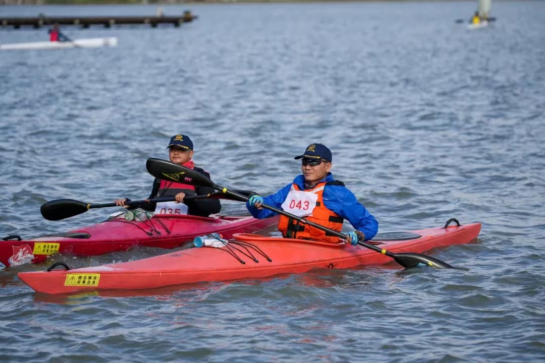 10月29日,跃动锡城•2022全民健身运动会皮划艇马拉松赛在蠡湖万象城水域顺利完赛。