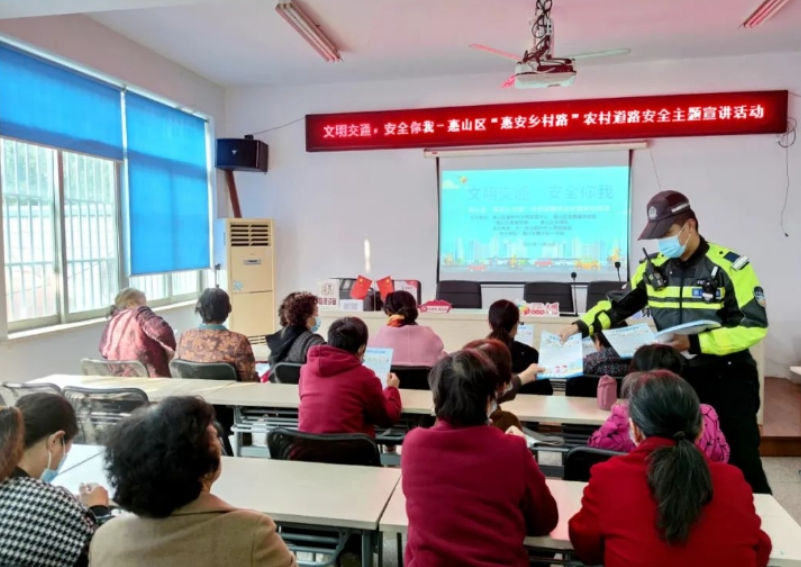 农村道路交通安全宣传教育的小课堂开课!”为了加强堰桥街道辖区内居民农村道路交通安全意识,惠山交警大队一中队的铁骑们分别来到街道新时代文明实践所、各社区新时代文明实践站,以“惠安乡村路 文明交通行”为主题,开展巡回安全宣讲活动。