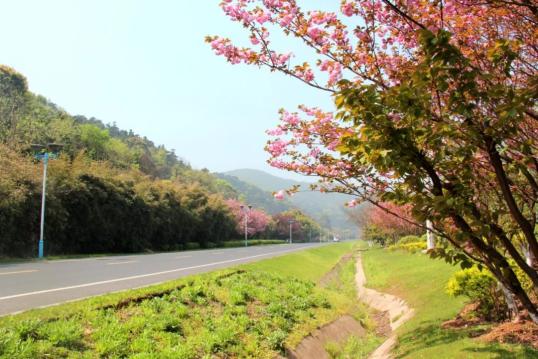 千波路西起古竹路,东至湖山路,是连接S230和X001的主干道,全长2.557公里,是集生态、平安、旅游、日常通行为一体的高颜值交通道路。
