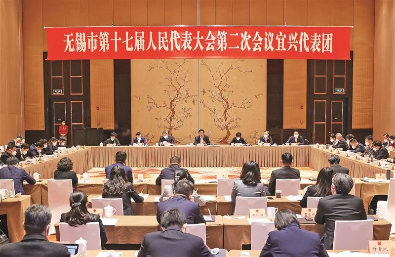 1月9日下午,市人大代表、市长赵建军来到所在的宜兴代表团,与代表们共同审议政府工作报告。他强调,宜兴上下要认真贯彻落实省委、省政府和市委决策部署,按照市两会明确的各项目标任务和工作要求,聚力绿色转型高质量发展,敢为善为扩优势,攻坚克难求突破,加快打造区域性国际化中心城市,努力让中国式现代化在宜兴展现可观可感的现实图景。市领导蒋敏、张镇,市政府秘书长陈寿彬参加审议。