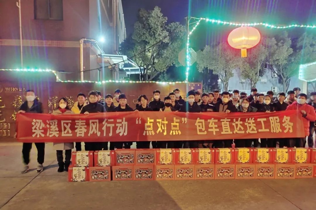 “来来来,大家远道而来辛苦了,公司食堂为大家专门安排了晚餐,大家吃过后就可以回宿舍休息了。”在精心安排下,务工人员一下车就吃上了热腾腾的晚餐,一扫长途颠簸的疲惫。“梁溪的企业待遇好,城市也很美,而且‘点对点’专车方便又安全,政府还专门来慰问,我感到很暖心,家里也很放心。”来自菏泽市东明县的返岗员工杨嘉辉从去年就入职了华洋公司,他表示,会在梁溪好好工作,争取在这里安家立业。