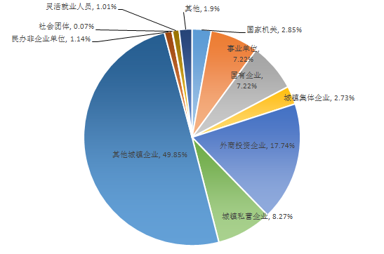 2023年一季度实缴职工数按不同性质单位分类占比图