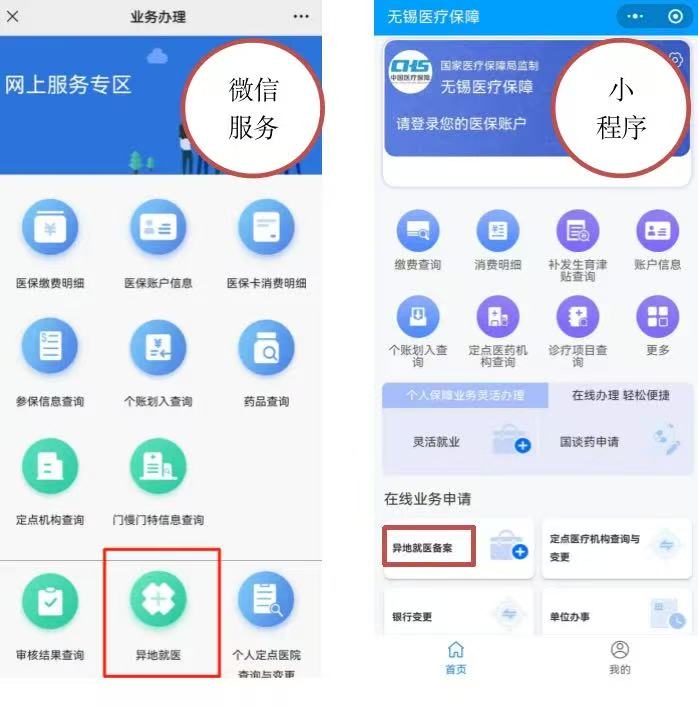1.“性爱论坛医保”微信公众号—业务办理—微信服务—异地就医;