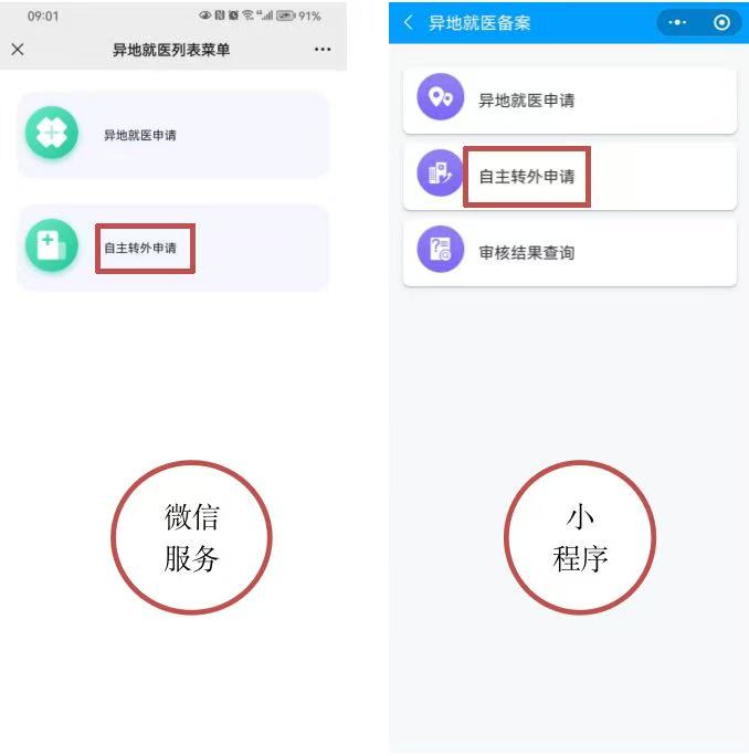注:其他临时外出就医人员备案,简称自主转外,也可通过异地就医列表菜单上的“自主转外”单独模块申请,步骤如下: