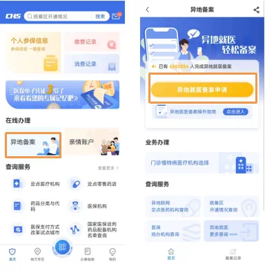 3.国家医保服务平台APP—在线办理—异地备案(限跨省就医备案);