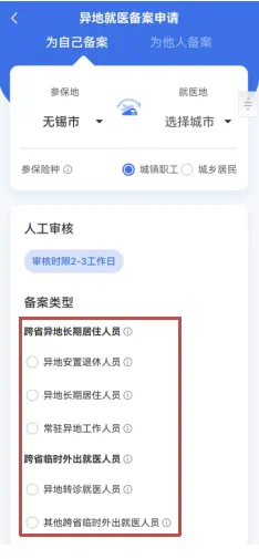 3.常驻异地工作人员备案:提供异地工作证明材料(参保地工作单位派出证明、异地工作单位证明、工作合同任选其一);