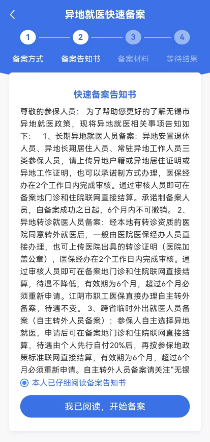第四步:请仔细阅读告知内容,了解异地就医政策。