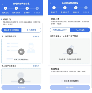 *选择“异地转诊人员备案”必须上传材料,不能选择个人承诺书。