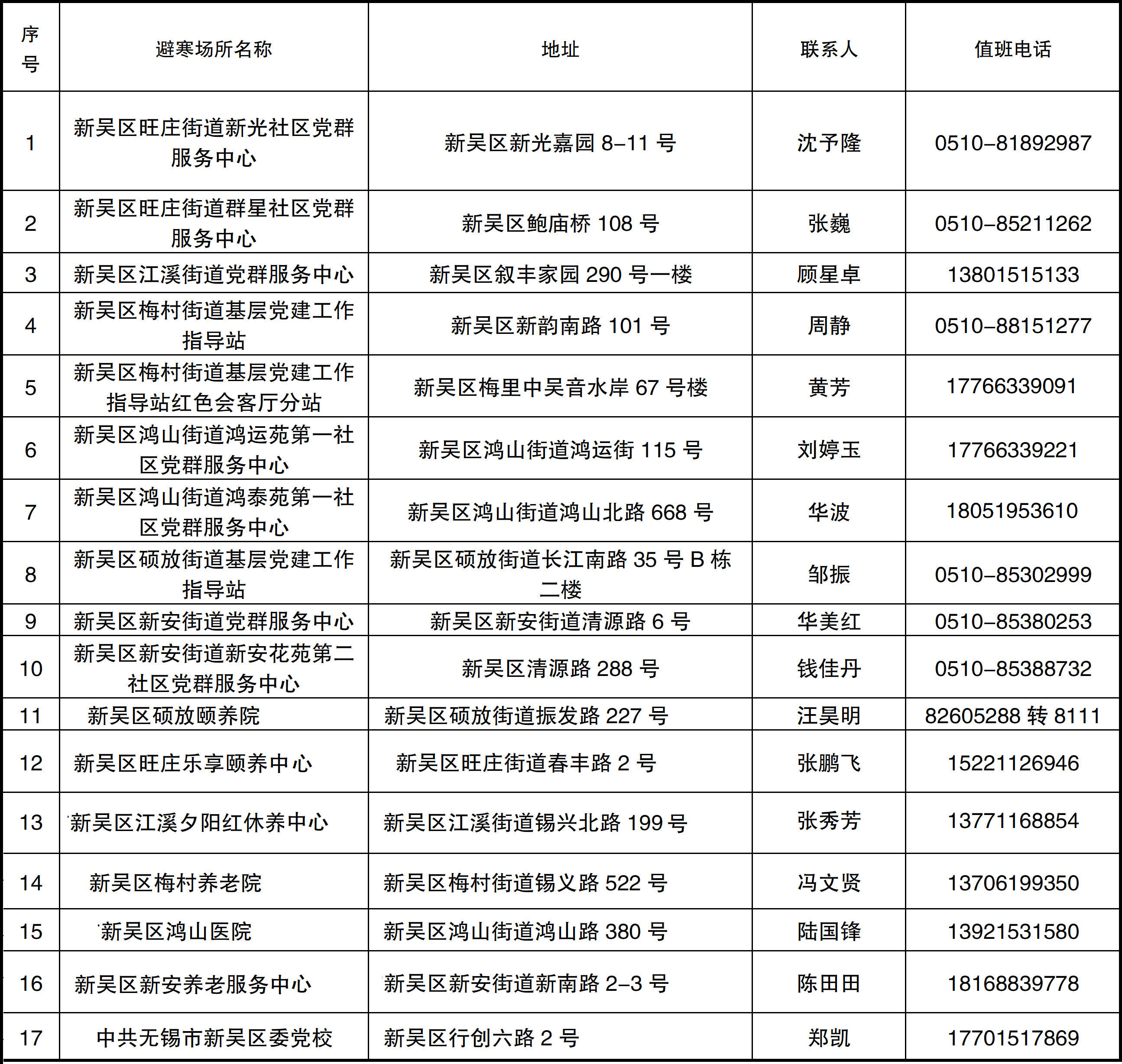 新吴区重点避寒场所