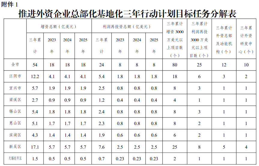 附件:1.推进外资企业总部化基地化发展三年行动计划目标任务分解表