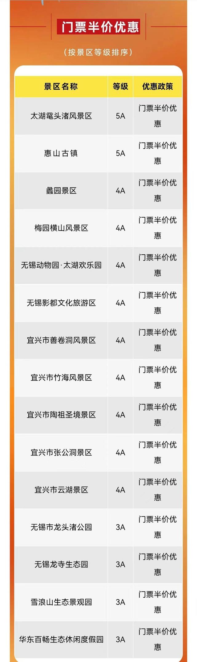 春节期间,门票半价优惠景区名单