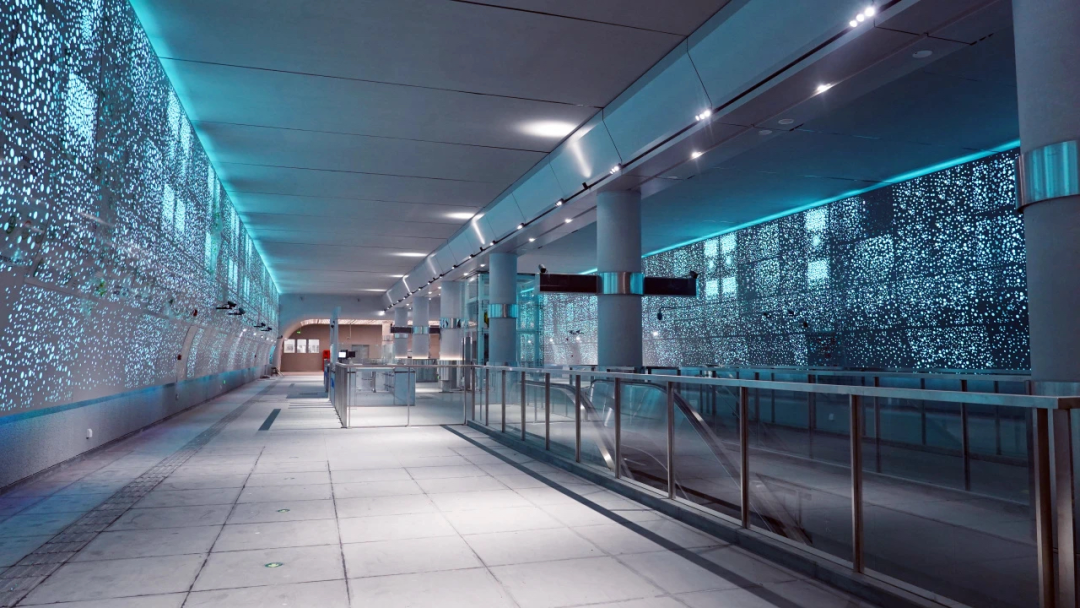 南门站位于虹桥路与连洋路路口南侧,为地下二层岛式车站,设有3个出入口,是全国首座智能建造的装配整体式地下车站,其多项建造技术达到国际领先水平,获得诸多国家级、省级及行业荣誉。