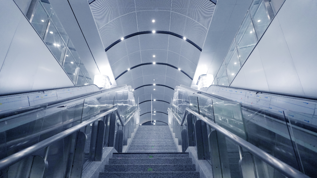中山公园站为S1线北起第二座车站,位于人民中路与虹桥北路交叉口处,为地下二层岛式车站。中山公园站整体采用简约大气的“竹简风”设计,造型模拟书卷形态,采用并列的三连拱搭接空间层次,简洁大方,设计精美。