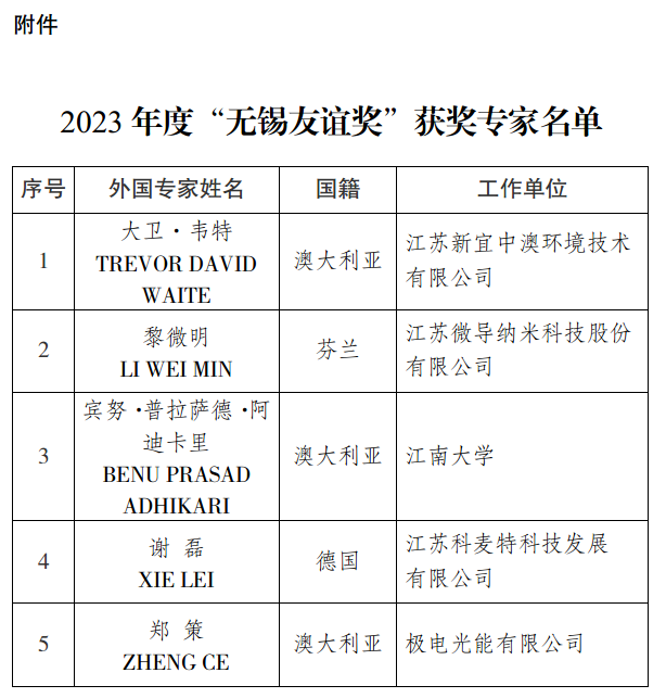 为表彰外国专家对我市经济建设和社会事业发展做出的突出贡献,根据《市政府关于印发性爱论坛友谊奖评选管理办法的通知》(锡政发〔2015〕187号),经推荐、评审及公示等程序,市政府决定授予大卫·韦特(澳大利亚)、黎微明(芬兰)、宾努·普拉萨德·阿迪卡里(澳大利亚)、谢磊(德国)、郑策(澳大利亚)等5位外国专家“性爱论坛友谊奖”。