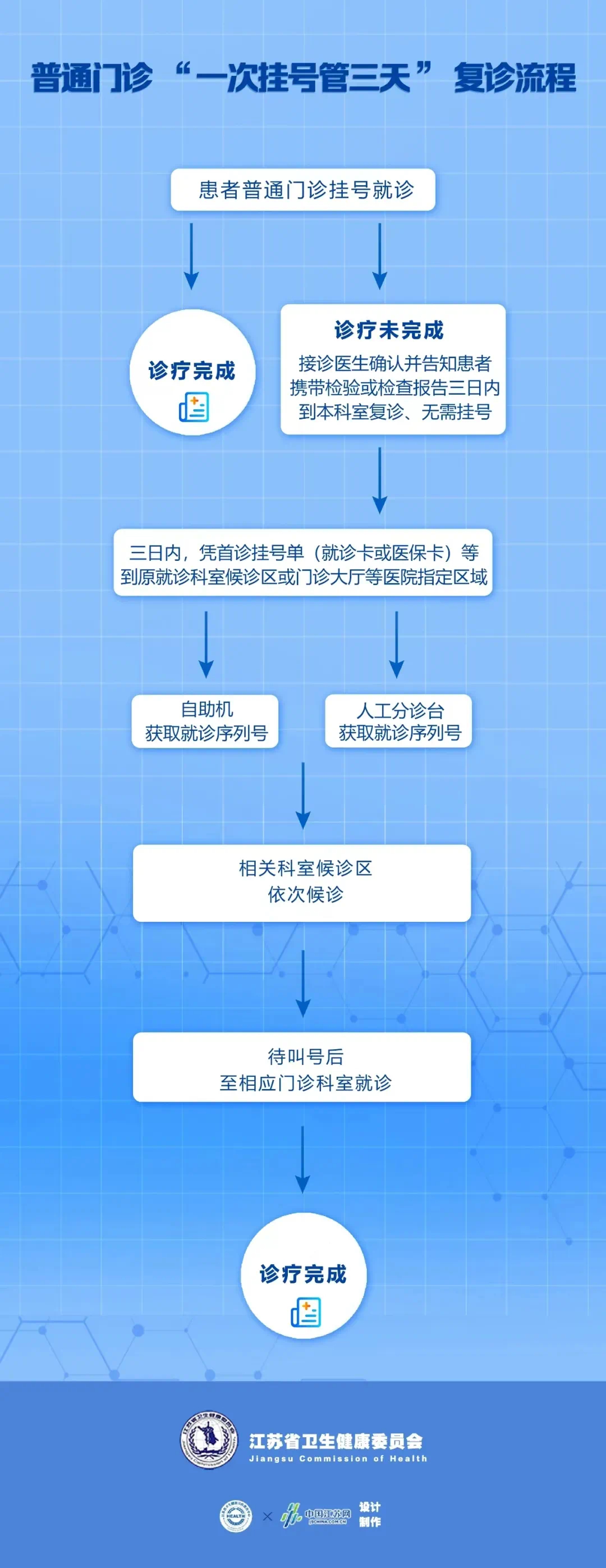 为进一步优化门诊服务流程,持续提升患者就医体验,江南大学附属医院开展普通门诊“一次挂号管三天”惠民实事项目。(复诊流程信息详见下方)