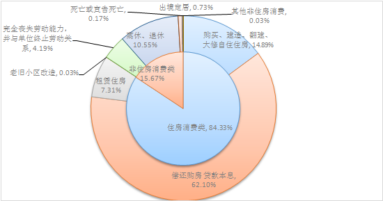 2024年二季度,住房消费类提取金额为55.6亿元,环比增长6.29%,占当季提取额的84.33%。其中还贷提取占比最高,提取金额40.94亿元,占当季提取额的62.1%。具体提取结构如下: