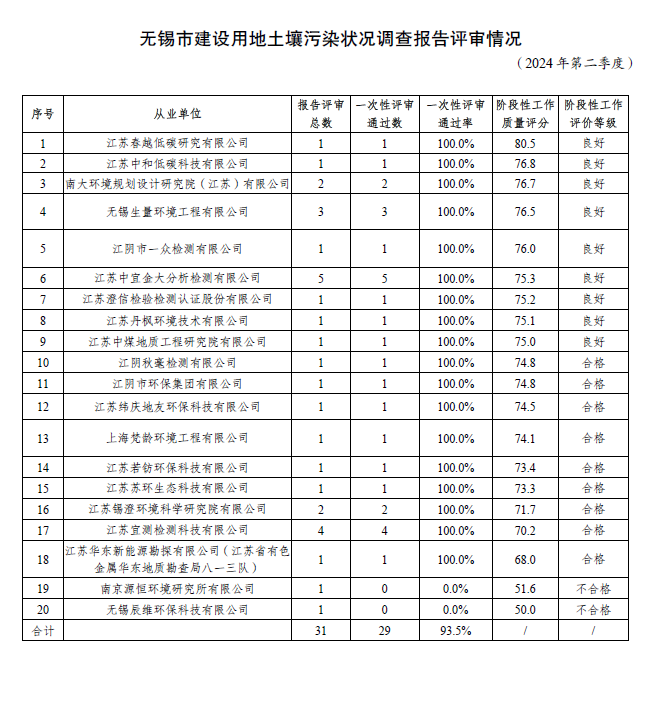 根据《性爱论坛建设用地土壤污染状况调查从业单位工作质量评价办法(试行)》,我局对全市2024年第二季度建设用地土壤污染状况调查报告评审情况进行了汇总,相关情况公示如下: