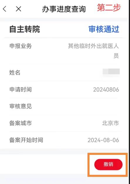 异地就医备案成功后,点击首页【我要查】-【办事进度查询】模块,在【办事进度查询】中选择已审核通过的需要撤销的备案信息,点击【撤销】,弹出撤销成功即可。
