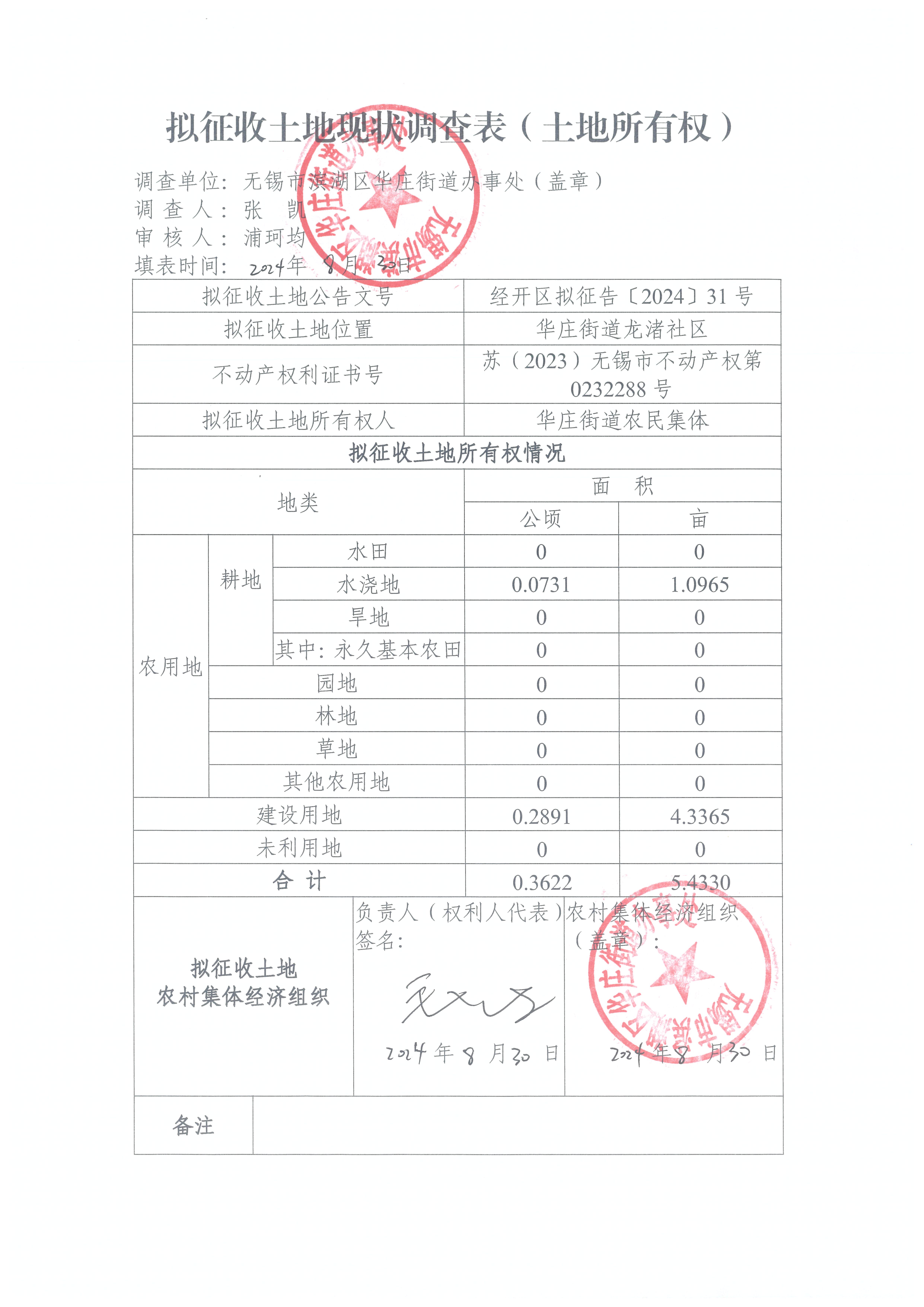 经开区拟征告〔2024〕31号确认-2022年华庄片区道路新建工程一期项目-华庄街道、华庄街道龙渚社区龙球渚村民小组、华庄街道龙渚社区张巷头村民小组