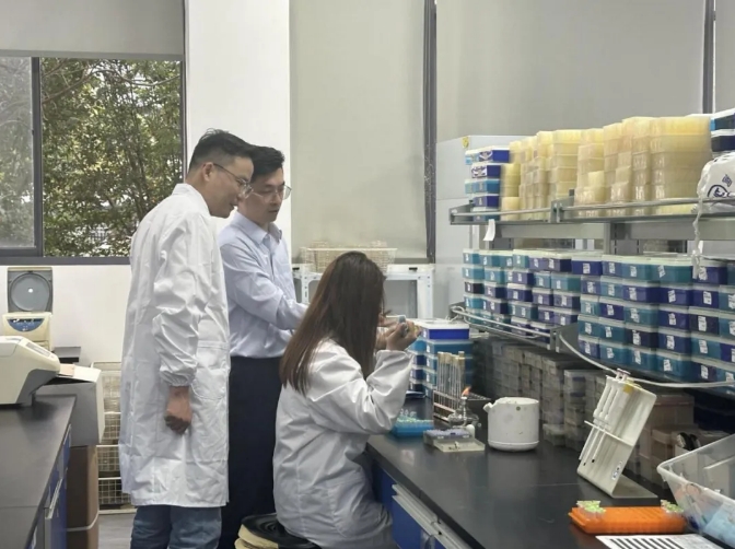 (图说:江苏银行信贷经理在赛索飞生物科技有限公司了解企业研发及生产情况)