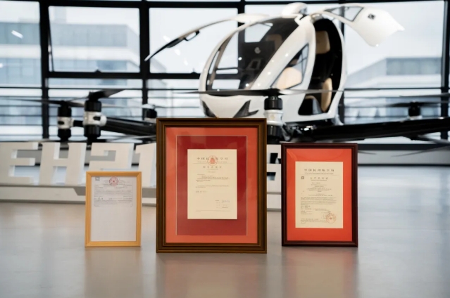 其中,亿航智能作为全球唯一取得无人驾驶载人航空器型号合格证(TC)、生产许可证(PC)、标准适航证(AC)“三个全球首张”的国际领先城市空中交通(UAM)科技企业。