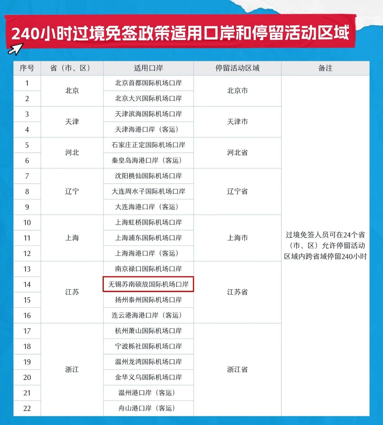 为240小时过境免签口岸