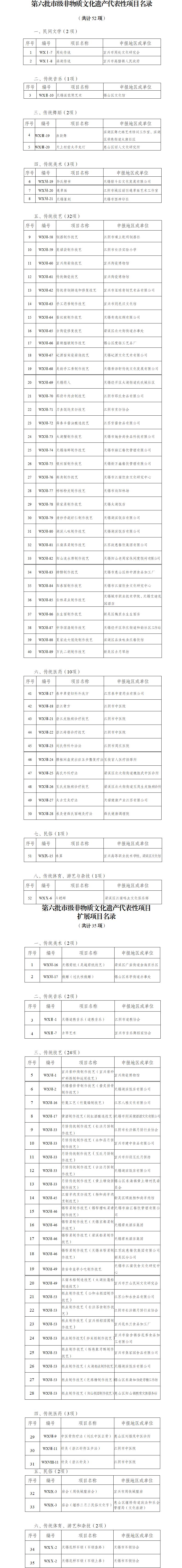 《第六批市级非物质文化遗产名录》和《第六批市级非物质文化遗产扩展项目名录》已经市政府批准,现予公布。