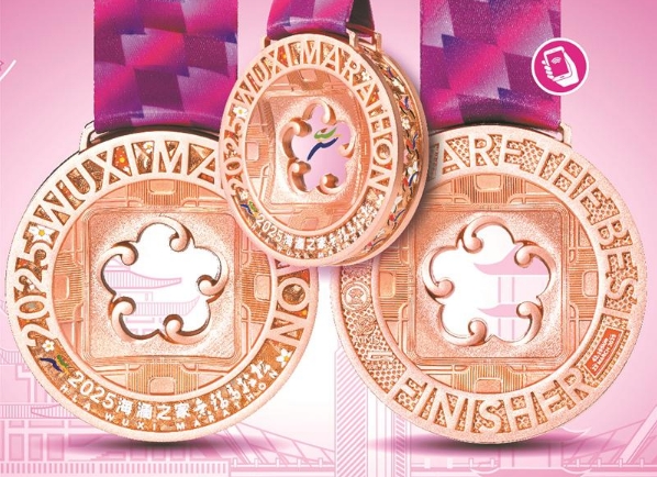 半程马拉松和欢乐跑项目奖牌则采用月光银色。