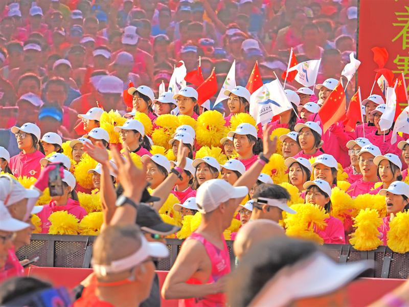 “加油!还有最后5公里!”上午9点,赛道旁市民小李举着自制应援牌,为跑者呐喊助威。他的身后,是4600余名安保人员组成的“人墙”。安保人员在维持秩序的同时,也为市民提供观赛指引。“赛道穿越点很贴心,我骑车去观赛点只绕行了10分钟。”小李点赞道。