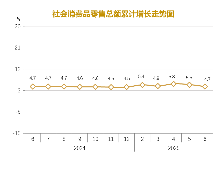 | 内容概述 | 2025年1-6月社会消费品零售总额增长4.7% | ||||